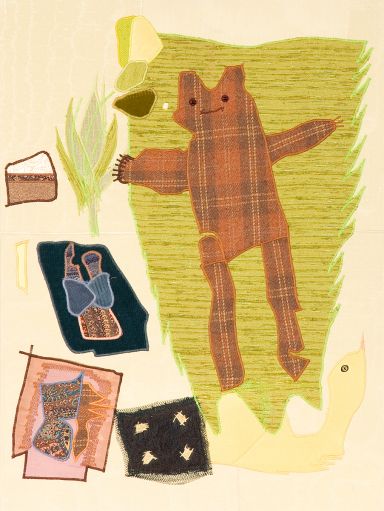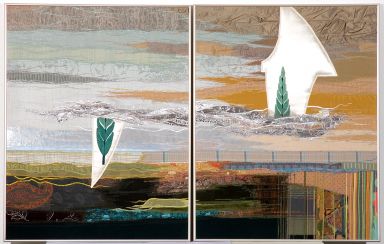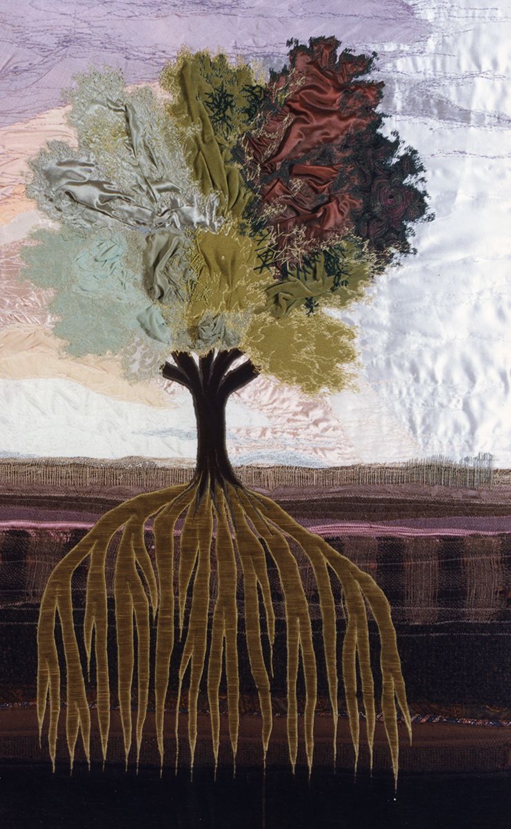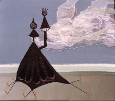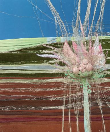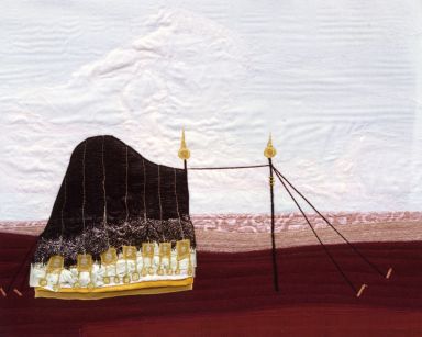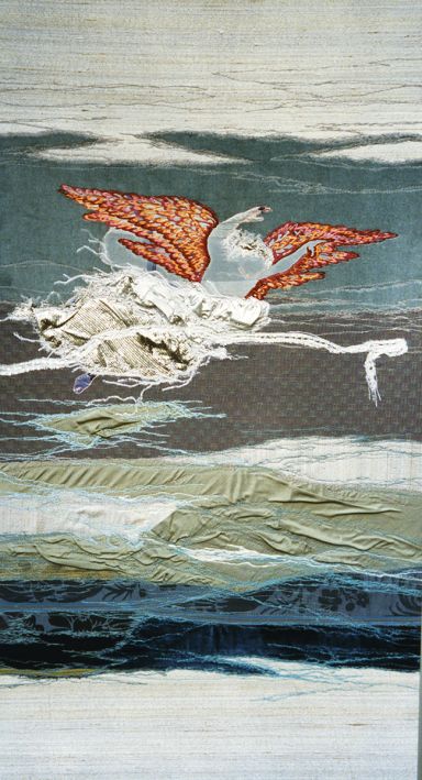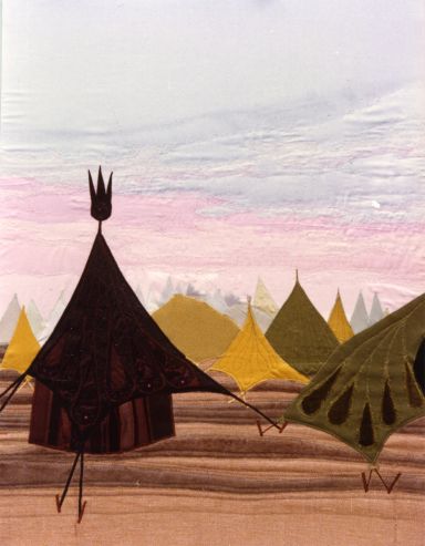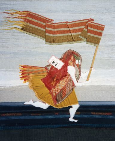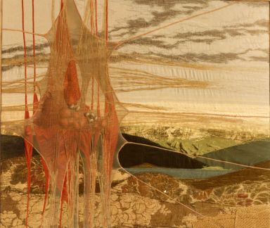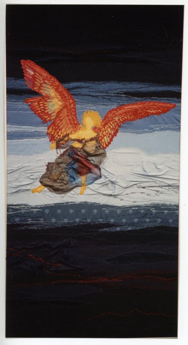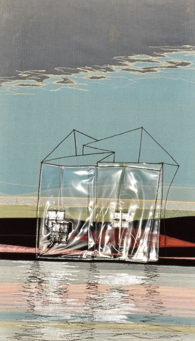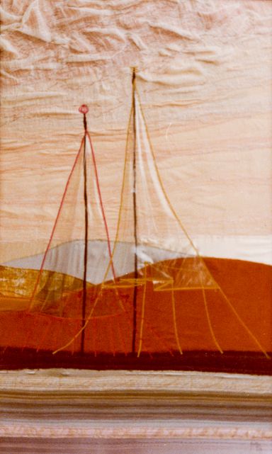 De wandkleden stammen uit mijn begintijd en zijn op spaanplaat gespannen. Ze zijn erin verschillende formaten en bestaan soms uit meerdere delen. Vanwege het veelal grote formaat van mijn werk, ben ik op een gegeven moment overgestapt op kleden zonder paneel.